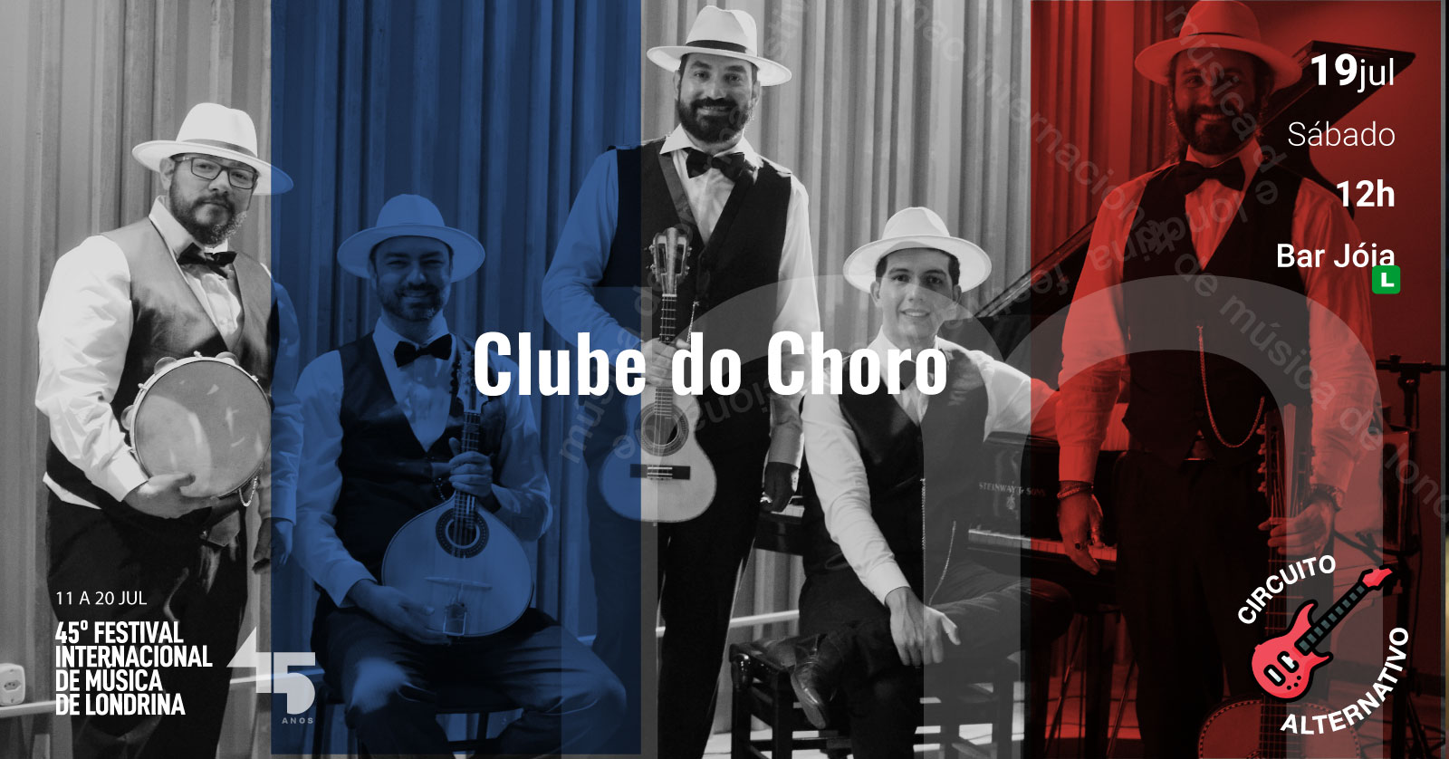 O Clube do Choro de Londrina convida o público para uma celebração à música brasileira instrumental, em mais uma apresentação marcada pela excelência musical e pela valorização do choro, um dos gêneros mais autênticos do país. Formado por músicos apaixonados pelo choro e sua riqueza rítmica e melódica, o Clube do Choro de Londrina é um dos grupos mais atuantes na cena instrumental do Paraná. Em suas apresentações, o grupo revisita obras de grandes mestres como Pixinguinha, Jacob do Bandolim, Waldir Azevedo e Ernesto Nazareth, além de dar espaço à nova geração de compositores e arranjadores brasileiros.